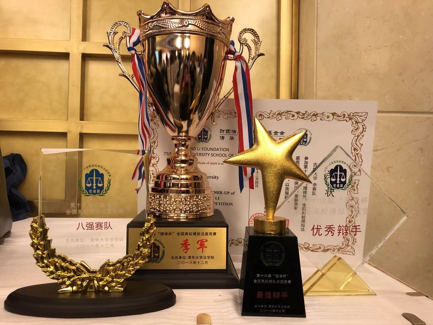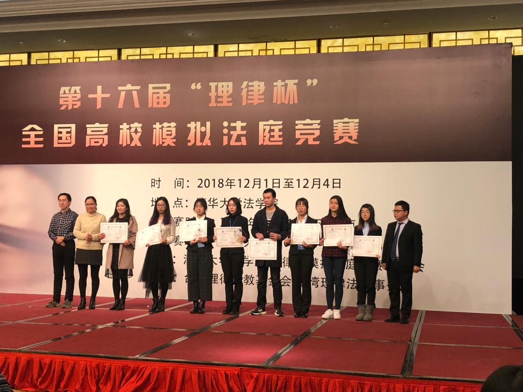 2018年12月4日,第十六届“理律杯”全国高校模拟法庭竞赛在清华大学永利yl23411官网落下帷幕。永利官网代表队凭借优异的表现荣获季军,连一蔓同学获得优秀辩手称号,刘晨同学获得最佳辩手称号。