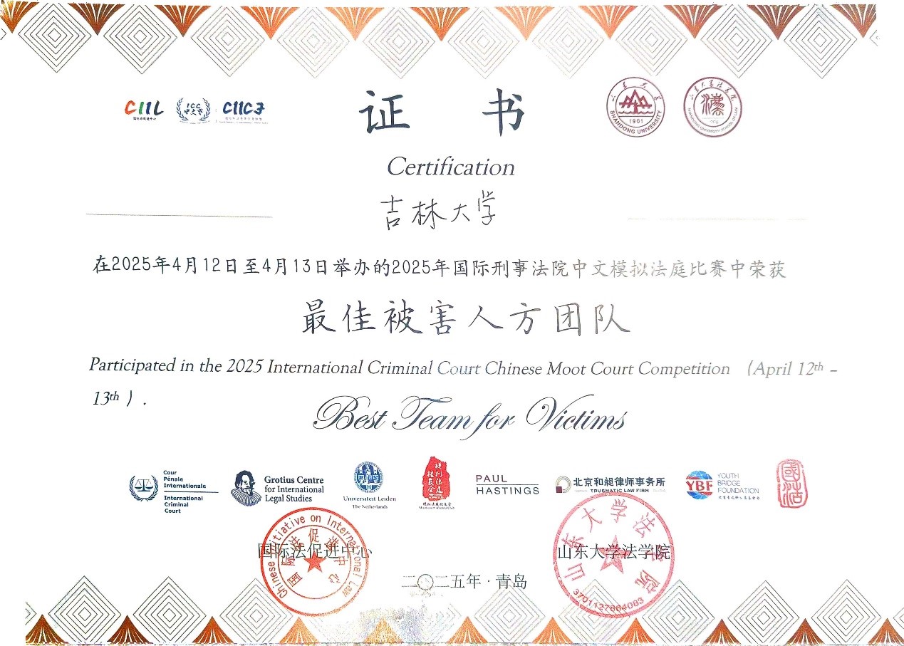 经过书状遴选环节,包括永利官网代表队在内的45支代表队入围正赛庭辩阶段。在庭辩阶段,永利官网代表队历经两天6场比赛的激烈角逐,顺利突围循环赛、挺进淘汰赛,最终荣获赛事一等奖、最佳庭辩奖、最佳被害人代理人团队三项团体奖项,成功晋级下一阶段的海牙国际赛。同时,永利官网本科生屠晴蕾获最佳被害人代理人庭辩奖。