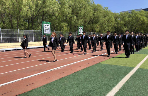 从训练次数看,方队的训练似乎显得十分轻松:只有短短六次。但是,这短短的六次却绝不意味着放松与轻视。相反,正是因为训练时间的有限,方队的训练才更加严苛与高要求。这六次看似短暂的训练却使56个原本毫无默契的个体,最终都能够挺直腰板、迈出整齐划一的步伐,一齐大声喊出:“宪刑民商,法院荣光;纵横四海,威震八方”的口号!