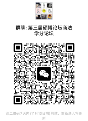 论坛对象包括2022级永利yl23411官网商法学方向法学硕士、博士研究生,以及由商法学方向导师指导的法律硕士。请各位同学及时扫码入群(入群后请在“我在本群的昵称”中写明“博士/学硕/法本法硕/非法本法硕+姓名”,如:博士张三)。