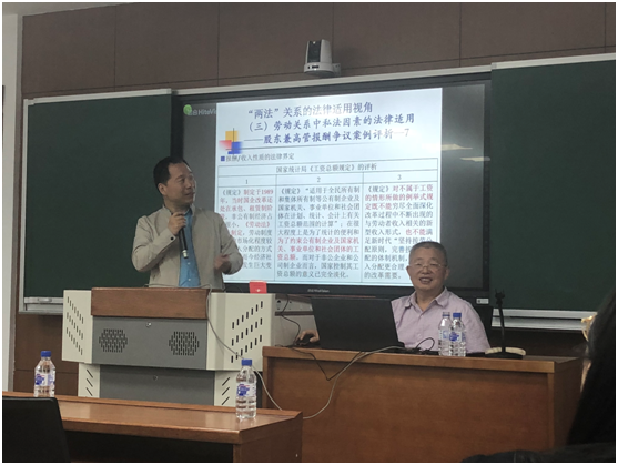 王全兴教授的讲座以中国特色社会主义事业持续发展为时代背景,在新站位、新眼光、新思维下思考民法、劳动法与社会保险法等法律规范如何分工合作从而有效保护劳动者的问题。王全兴教授首先对部门法关系的研究进行了反思,认为法律部门的划分固然重要,但其只具有相对意义。不可以是否划分法律部门来评价一国法律体系的优劣。对不同部门法关系的研究思路可向总体研究与个案研究并重、区别与联系研究并重、法理学与部门法总论及分论研究并重、法学与其他学科研究并重的方向转变。随后王全兴教授分别从比较法视角、法理视角、立法视角、法律适用视角对民法与劳动法的关系进行讲述。指出劳动法与传统民法的关系是传承与超越,劳动法与现代民法的关系是分工与合作,灵活就业者的权益保护需要劳动法、民法与社会保险法的共同组合。在劳动争议案件中,民法规范可以补充适用,并以股东兼高管报酬争议案为例详述劳动关系中的私法因素。